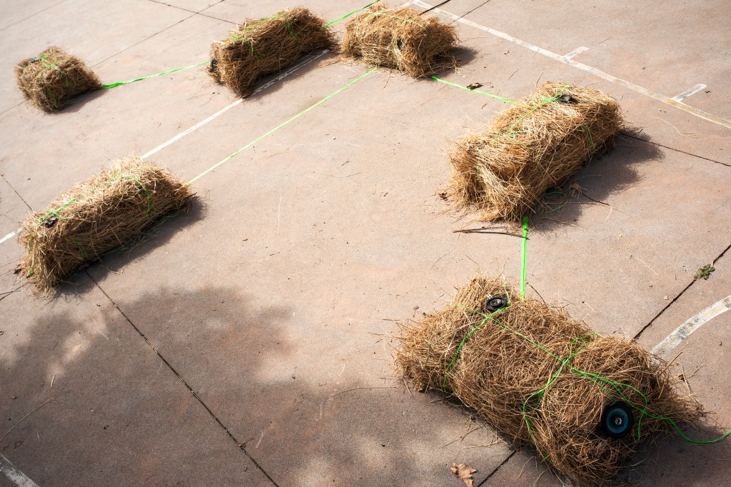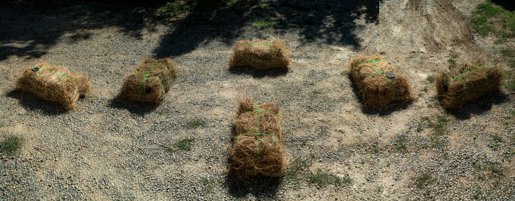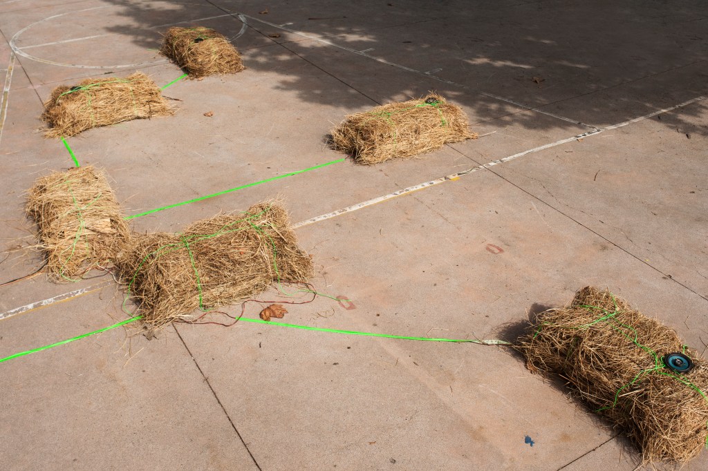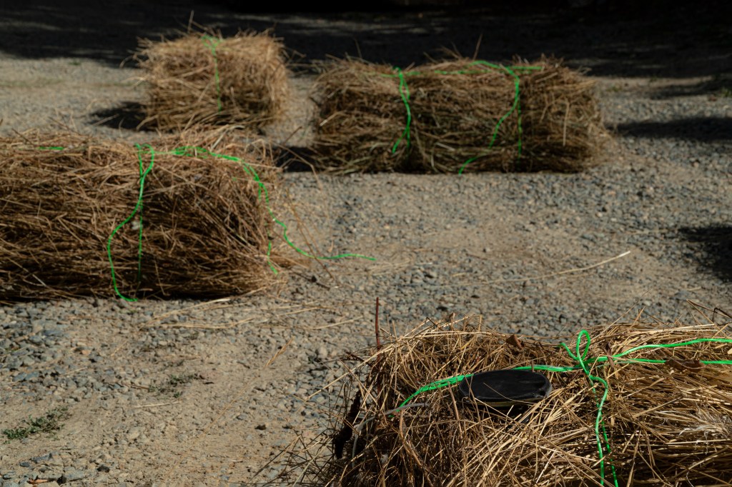 During the three weeks I spent in the hills of Nizza Monferrato for UVA programme, I recorded different natural sounds (cicadas, wind, crickets, chickens, flies) that usually compose a common background soundscape of the private properties in the area. I modified them thinking they could take on a different, almost horrific value. I then designed six benches influenced by the imaginary of the hay bales, all cut and assembled without any kind of mechanical process.