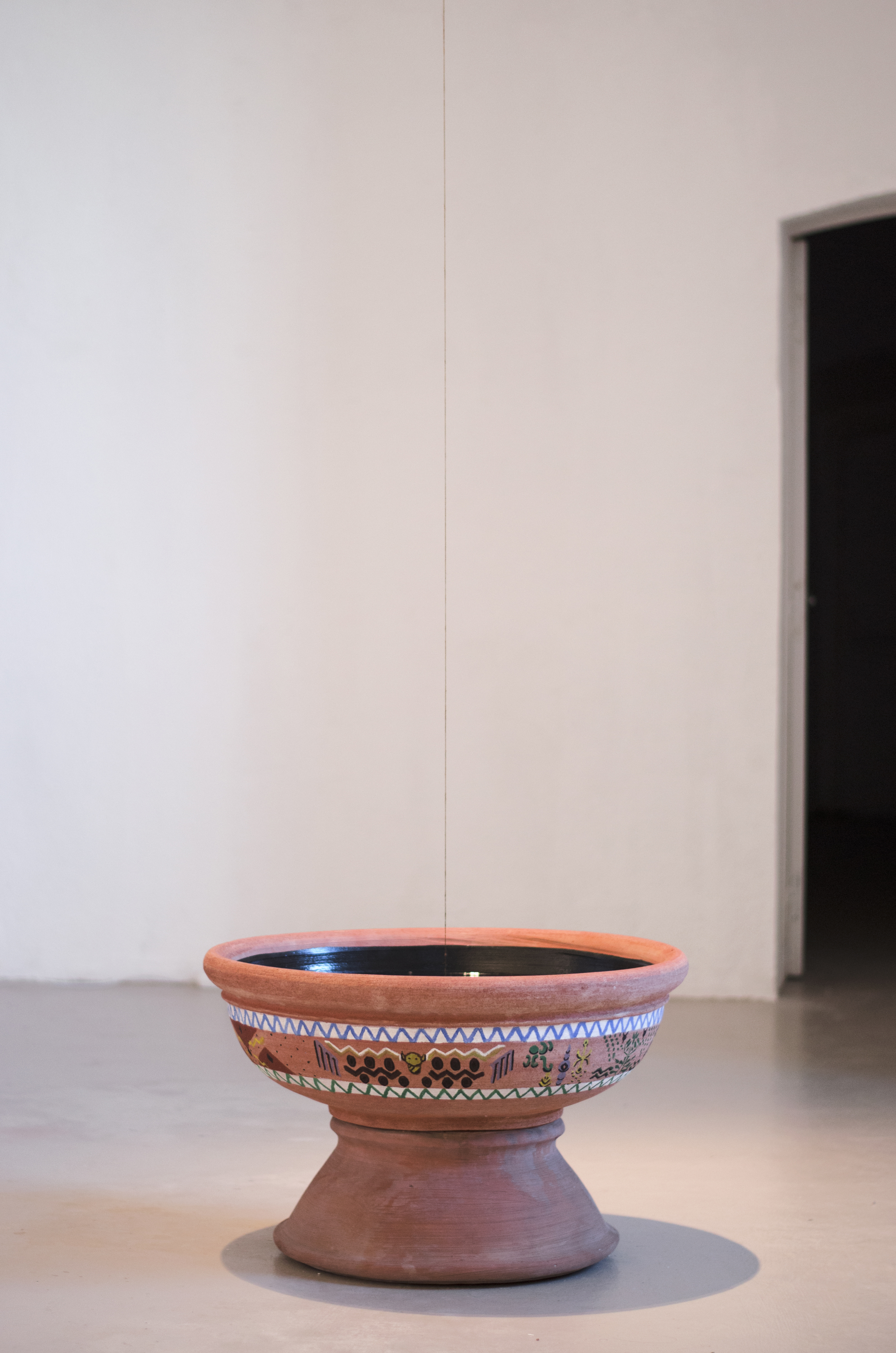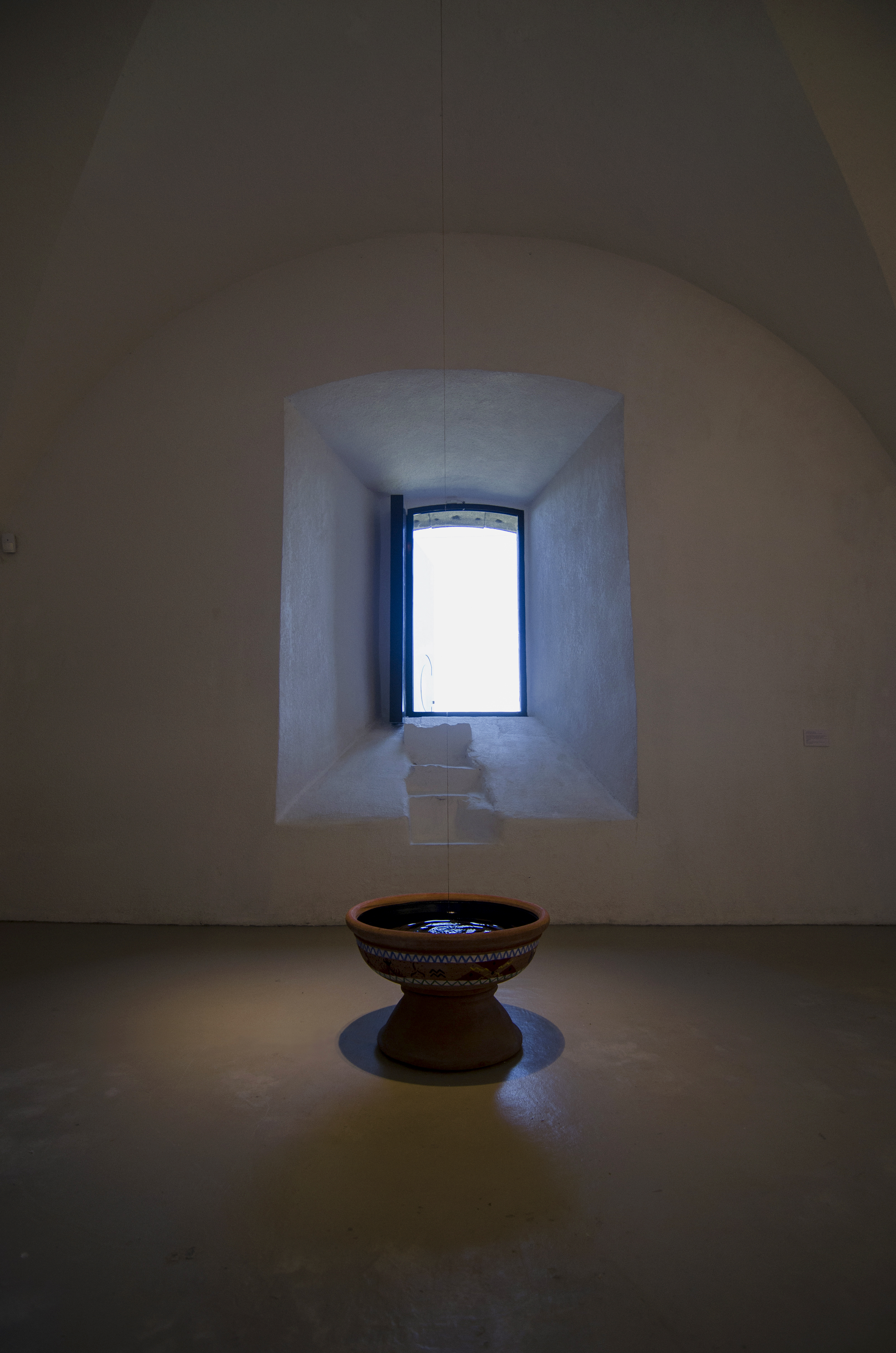 Terracotta, acrylic, subwoofer, colored water, wire of bisso, audio
