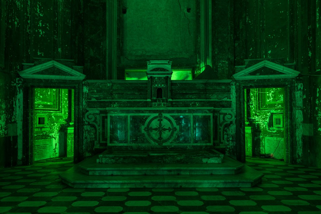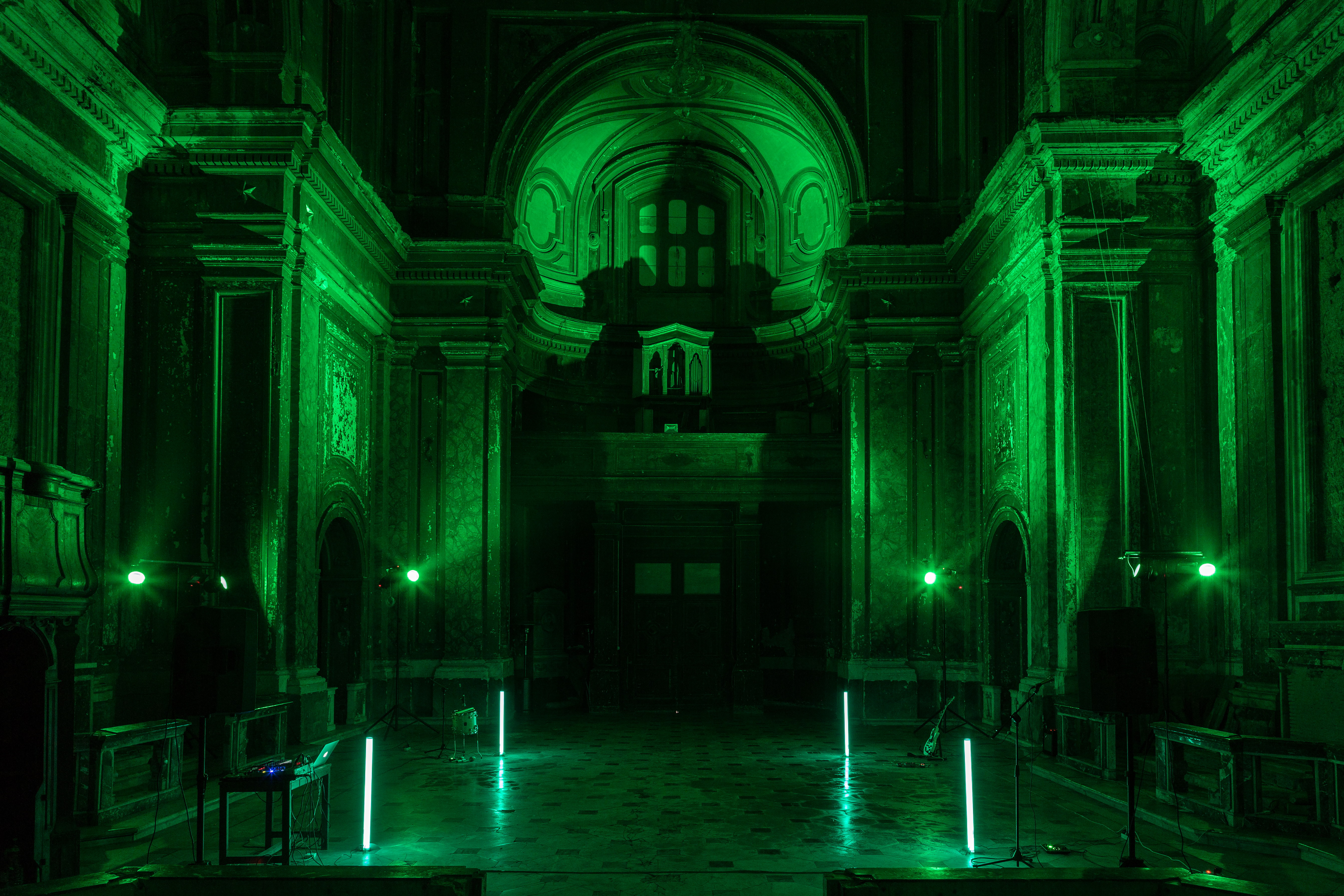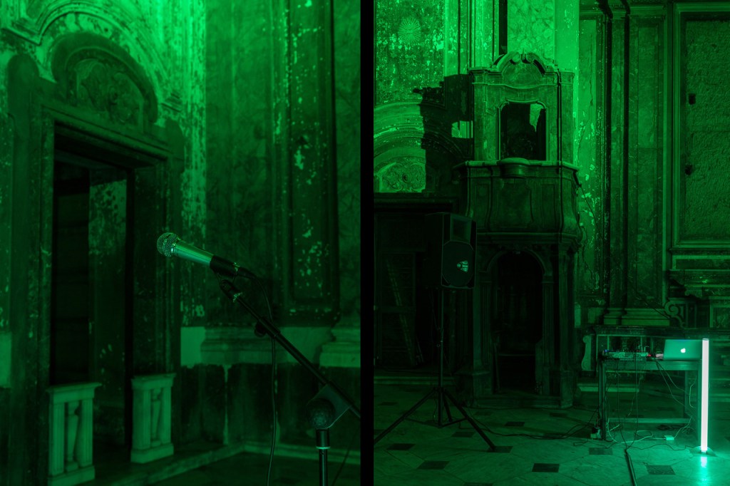 Mimetic Ensemble for a church #1 is a performance conceived by The Boys and Kifer for the church of San Giuseppe delle Scalze in Naples. The work is developed through the use of four live designated positions – each one for a different music instrument – located in the central nave of the church. Through the activation of every instrument, The Boys and Kifer enacts a stratification of melodies and different sounds – among which some field recordings collected in Naples in the days preceding the event – with the purpose to create a unique combination of sonorities capable to influence each other and then lose their singularity.