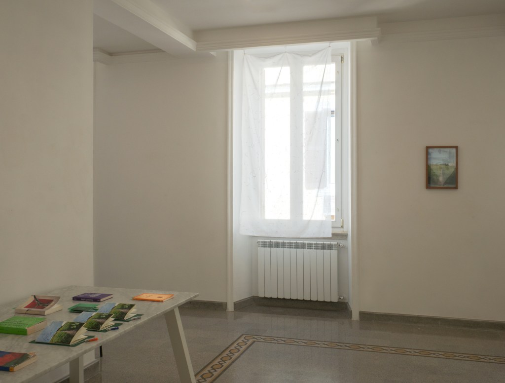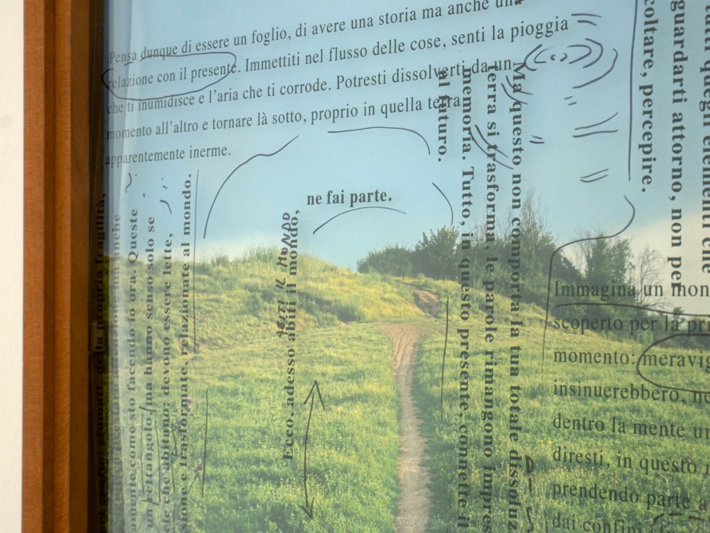 The exhibition reunites all the materials created during the workshop (texts, drawings and recordings) and two new works by the artist: “Allineamenti (Parco della Caffarella, Roma)” and “ARIA (Composizione III)”