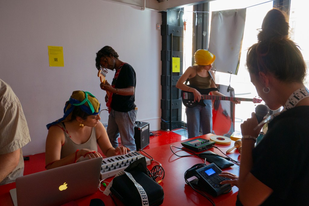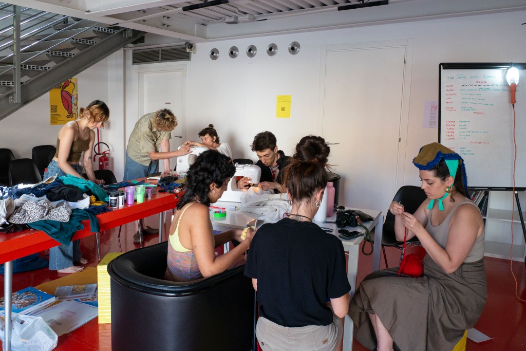 Each Other Again is a performative platform thinked by TBAK to speculate on new ways of living and partying together – staying far from the consolidation of roles and authorities. All participants in these workshops temporarily become part of the band, exchanging skills in music, sewing, video, and other fields to build a horizontally structured community focused on togetherness.