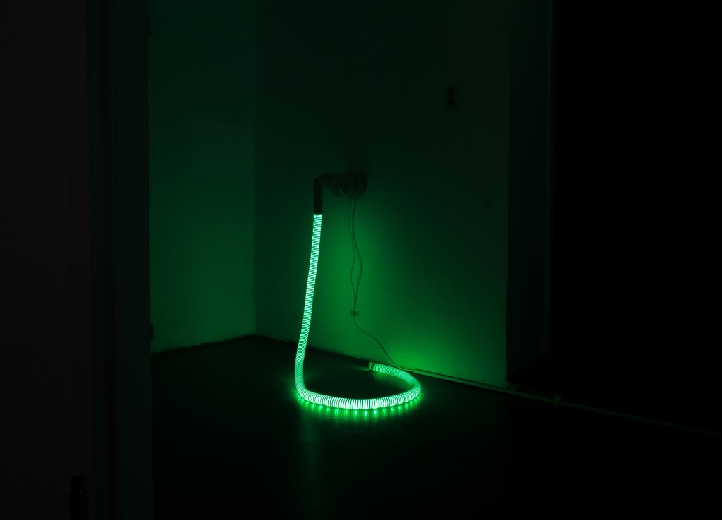 For the realization of these works, the artist collected recordings of himself or friends who traveled to distant countries (New York, Sardinia, Tokyo, Thailand). The tracks were slowed down to create a subdued background noise, where every spatial and temporal data is screened. The displays are defined by the artist as non-objects, devices that inhabit the margins of any domestic or commercial environment: junction boxes, drainage pipes, or ventilation ducts. Functional but concealed instruments that usually serve to hide “passages,” be they of energy, air, or information. Using these devices as anomalous resonators, Casti highlights what dwells at the edges of anthropic space, reinterpreting the connections that link the living space to the outside, the micro to the macro, the individual to the planet in which they live.
